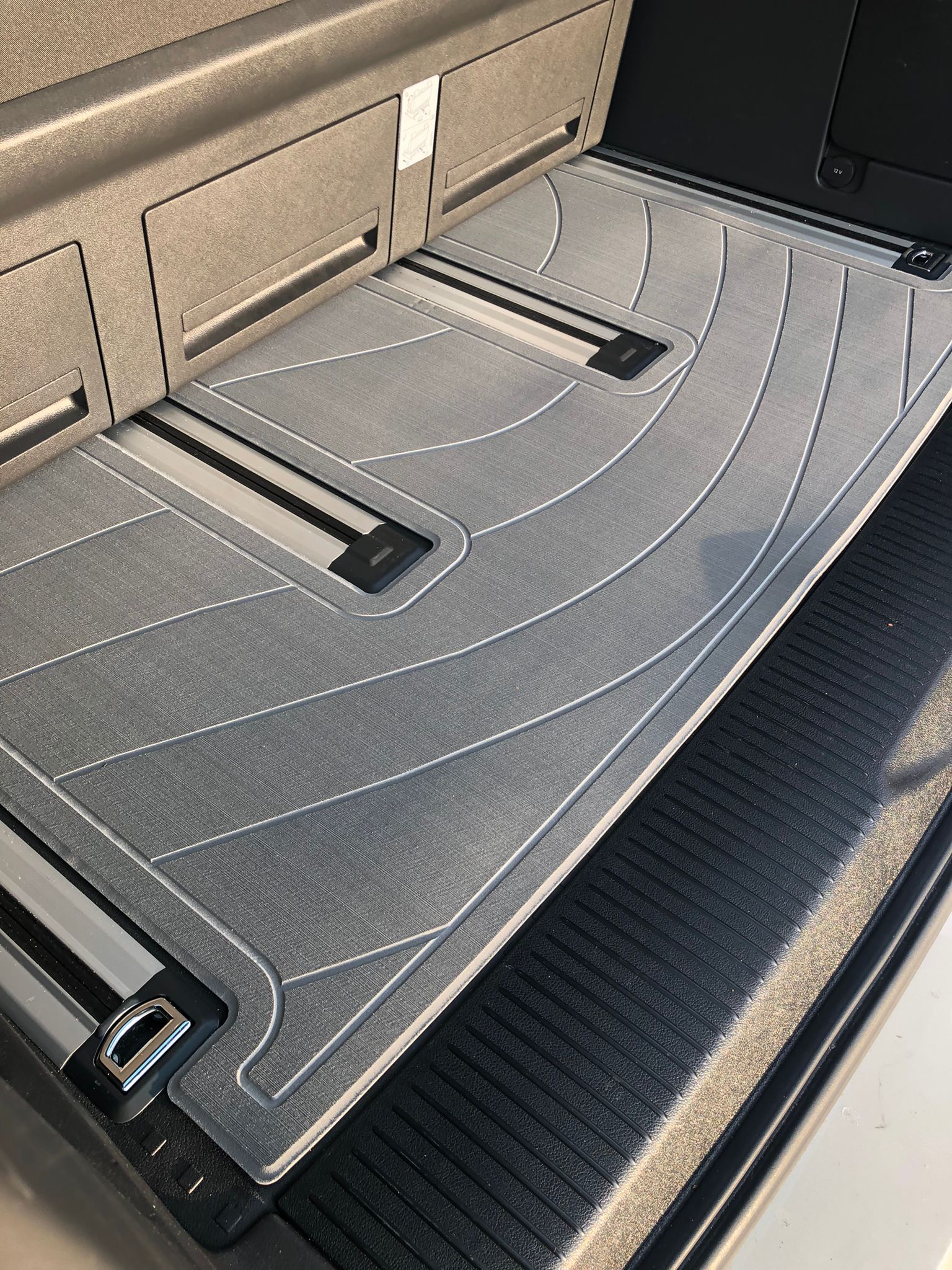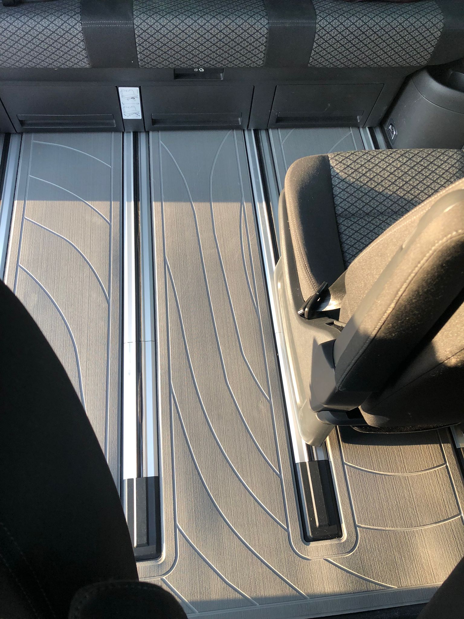 Wichtig: Wir fertigen kein 1:1 Abbild des ursprünglichen Fahrzeugbodens, sondern einen zusätzlichen Bodenbelag, der im Handling vergleichbar ist mit einem nachträglich gekauften Teppich. Die charakteristische Passgenauigkeit der Cloudpad® Böden kann nur bei Projekten gewährleistet werden, bei denen wir das Fahrzeug in unserem Betrieb in Erkelenz selbst vermessen haben. Toleranzen von bis zu 10 mm (umlaufend) können durchaus vorkommen - die auf unserer Website aufgeführten Bilden geben hier einen guten Eindruck.