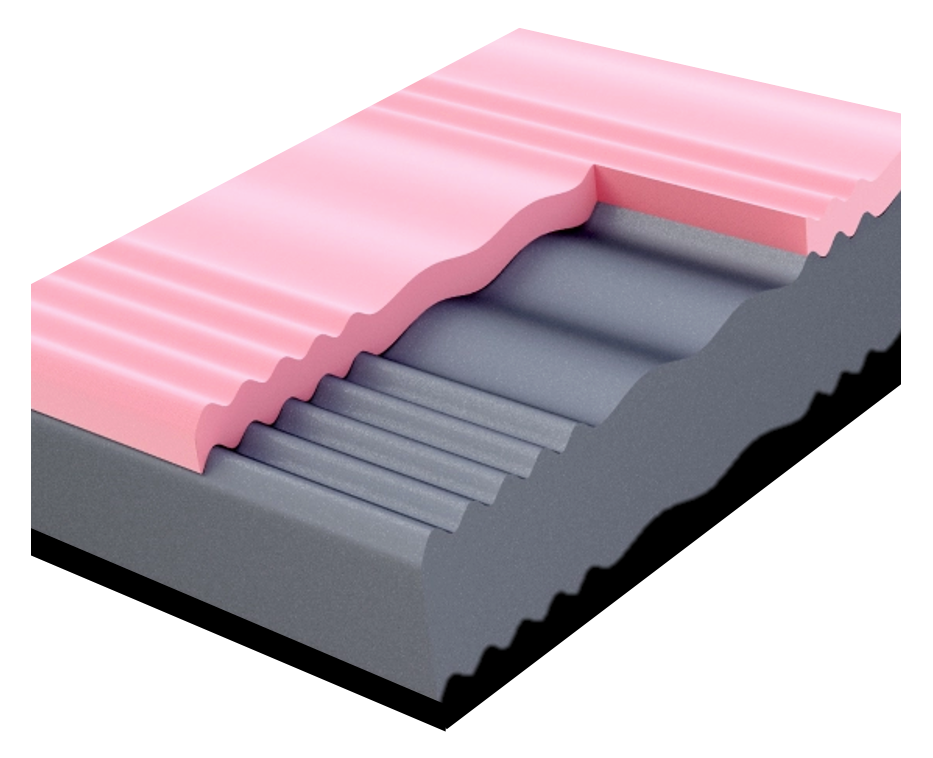 Die unterste Schicht besteht aus einem rutschfesten PVC. Die glatte Oberfläche des Materials sorgt für sicheres Liegen des Bodens im Fahrzeug, und verhindert das „Wandern“. Außerdem verleiht